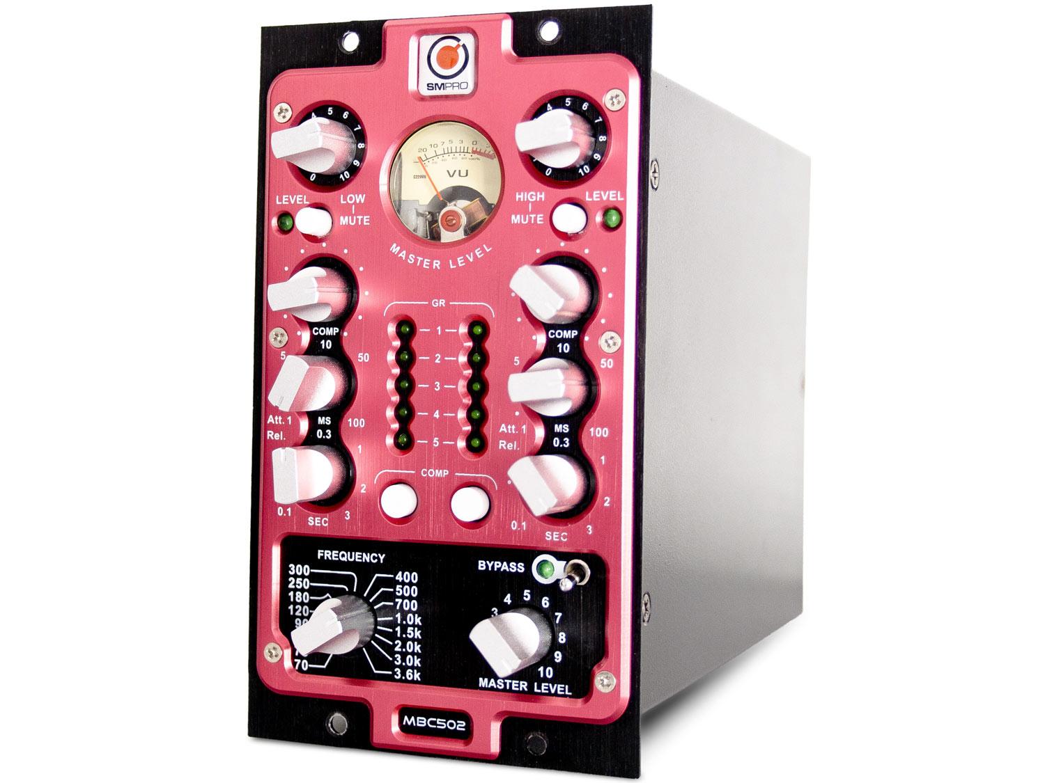 L'MBC502 è un compressore ottico multi-banda ad un canale in formato 2 slot, caratterizzato da una elevata qualità sonora ed un design professionale. MBC502 è in grado di agire su due bande distinte (basse e alte frequenze), offrendo un controllo indipendente su livello, rapporto di compressione, attacco e rilascio. Mediante un apposito pulsante è possibile disattivare uno dei canali di compressione in modo che l'altro possa fungere da filtro con centratura di frequenza selezionabile. La sezione Master include una comoda manopola per la regolazione del livello di uscita, che agisce su entrambe le bande simultaneamente, un interruttore bypass e un selettore a 16 step per regolare la frequenza. La qualità sonora dell'MBC502 è garantita dall'amplificatore LME49720 che assicura una distorsione e una rumorosità estremamente basse. L'MBC502 dispone di un VU-meter per la visualizzazione del Master Level e due indicatori a LED per la visualizzazione della riduzione del gain.