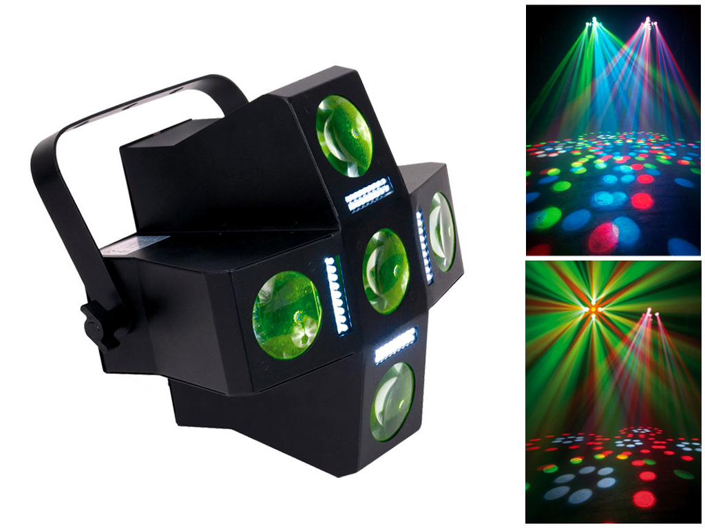 • 282 LED totali: 210 LED moonflower (60R, 75G, 45B e 30W) + 72 LED strobo Bianchi