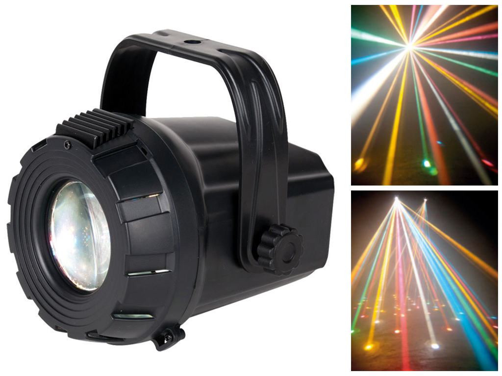 ADJ Micro Moon è un effetto luce plug and play tipo Moonflower che produce raggi multicolore che si muovono al suono della musica. Grazie al suo basso consumo, alla lunga durata della sorgente LED ed alla sua facilità d'uso, il Micro Moon è un effetto ideale per feste, karaoke, piccoli bar e club ed anche per impego domestico.