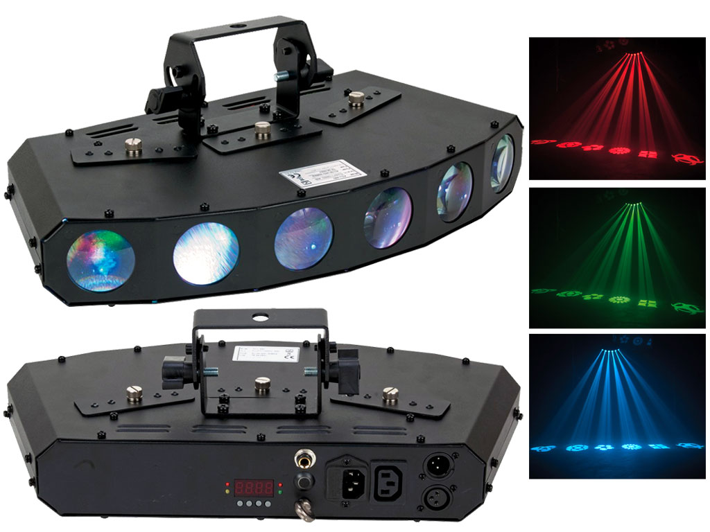 Gobo Motion LED di American DJ è caratterizzato da veloci fasci colorati Tri LED con 6 motivi gobo sostituibili. I gobo possono essere rimossi e l'apparecchiatura può essere utilizzata con 6 fasci luminosi compatti. Questo effetto luminoso consente a piccoli club ed intrattenitori itineranti di avere a disposizione più effetti luminosi in un'unica unità senza dover trasportare più apparecchiature. Gobo Motion LED è semplice da utilizzare ed ha 3 modalità di funzionamento: controller DMX, Master/Slave e Sound-Active. Quando utilizzato in modalità Sound-Active o Master/Slave, sono disponibili diversi programmi integrati. È possibile utilizzare il telecomando UC3 di American DJ per attivare e disattivare l'unità e per scorrere attraverso i vari programmi. È possibile collegare tra loro fino a 9 Gobo Motion LED tramite connettori IEC.