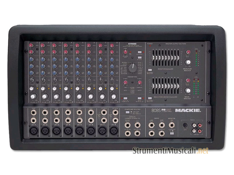 Mixer stereo amplificato (600W+600W/2-Ohm) - 6 canali mono microfono/linea 2 canali mono microfono/stereo linea; EQ a 3 bande fisse ; 1 mandata MON pre-fader, 1 mandata EFX post-fader. Effetto digitale con 16 preset e 2 parametri regolabili; 2 EQ a 9 bande (stereo per MAIN e mono per MON), 2 filtri 75Hz/18dB ed EFX Return indipendenti; amplificatori assegnabili a MAIN/LEFT+MON/RIGHT+MON; interruttore per compressore per MAIN MIX e MON.