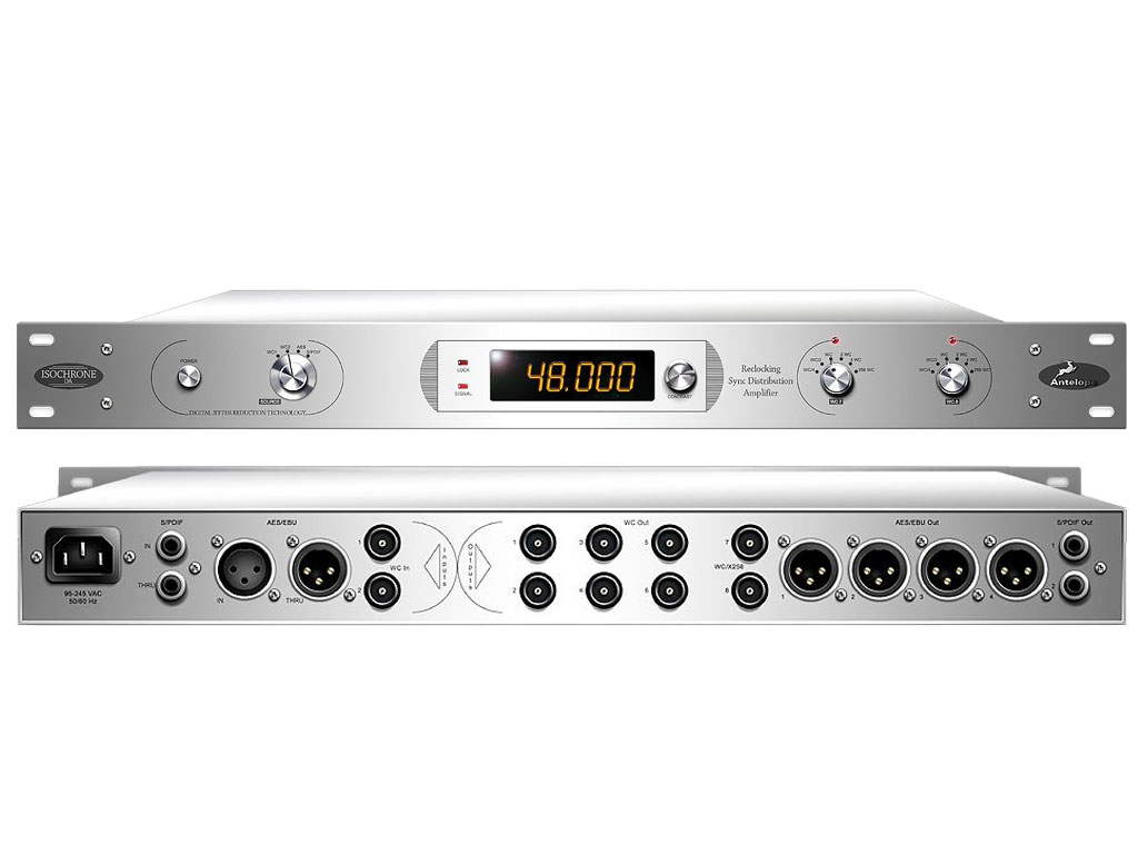 Col proliferare della tecnologia digitale, la distribuzione del clock é divenuta un aspetto critico come mai sino ad ora, il DA rappresenta la soluzione definitiva. L'Isochrone DA é il nuovo approccio alla distribuzione del clock che non ha precedenti. Progettata per essere molto più di un semplice distributore di clock, l'esclusiva tecnologia di rigenerazione del DA, potrà sincronizzare tutte le apparecchiature dello studio con una precisione senza eguali e farà, inoltre, in modo che suonino meglio di quanto chiunque abbia mai potuto immaginare. L'Isochrone DA é stato creato per il miglioramento di qualunque studio, non solo di quelli che hanno bisogno di un maggior numero di uscite di clock. L'Isochrone DA affronta la distribuzione in modo totalmente diverso, aggirando l'approccio di amplificare le imperfezioni come fanno altre apparecchiature. Tramite il procedimento di rigenerazione del clock, esclusivo di Antelope, il DA distribuisce un segnale ampiamente superiore a quello della sorgente. Questo segnale a bassissimo jitter stabilizza l'intero studio e, le macchine connesse, usufruiranno di miglioramenti significativi in termini di qualità sonora.