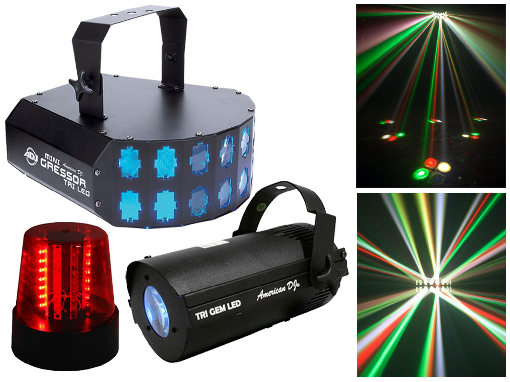 Questo speciale trio estremamente conveniente, è una soluzione di illuminazione ideale per feste casalighe o per i DJ itineranti che hanno bisogno di una scintilla di divertimento e di luci variopinte a tempo di musica.