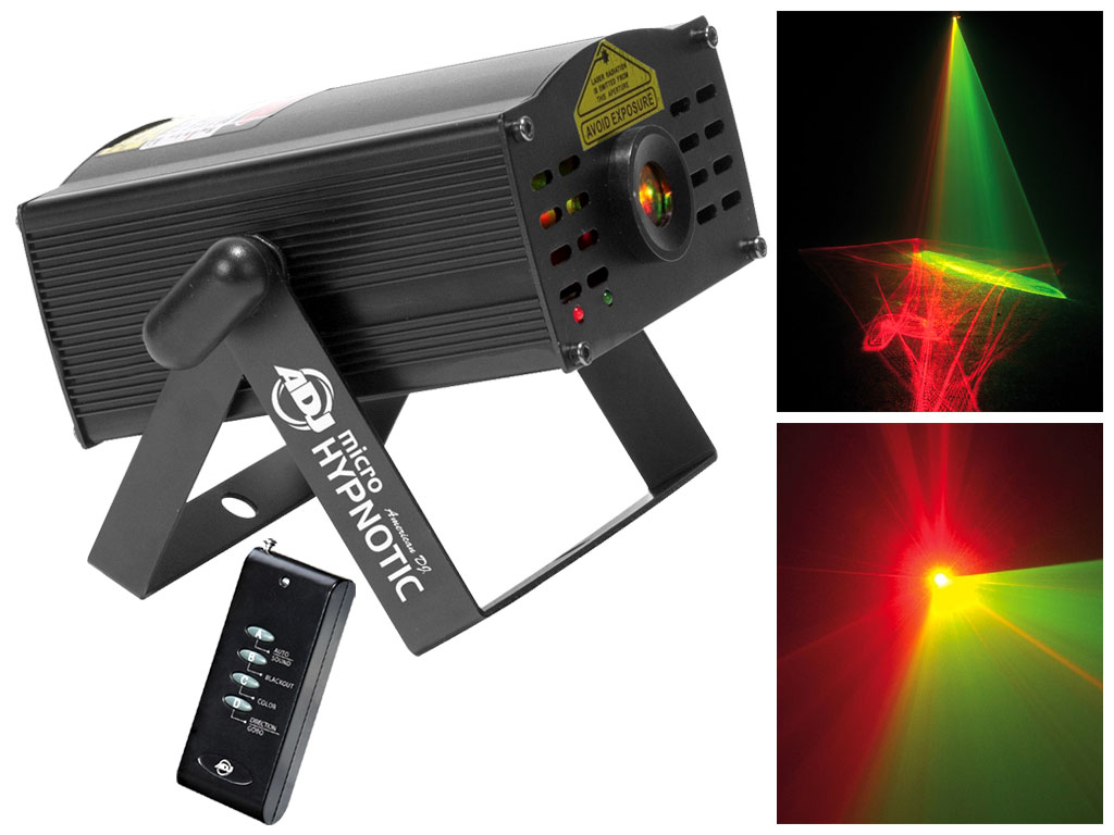 Questo allettante effetto luminoso proietta straordinari motivi a "tela di ragno" rossi e verdi che possono essere diretti su soffitti, pareti o piste da ballo. È sicuro e conforme allo standard FDA. Micro Hypnotic è semplice da utilizzare – è sufficiente collegarlo alla presa elettrica per avviare i programmi integrati in modalità automatica o ad attivazione sonora. È possibile cambiare programmi, colori e black out con il telecomando RF incluso. Il contenitore leggero e compatto di Micro Hypnotic lo rende ideale per intrattenitori itineranti, bande, night club e bar o qualsiasi party.
