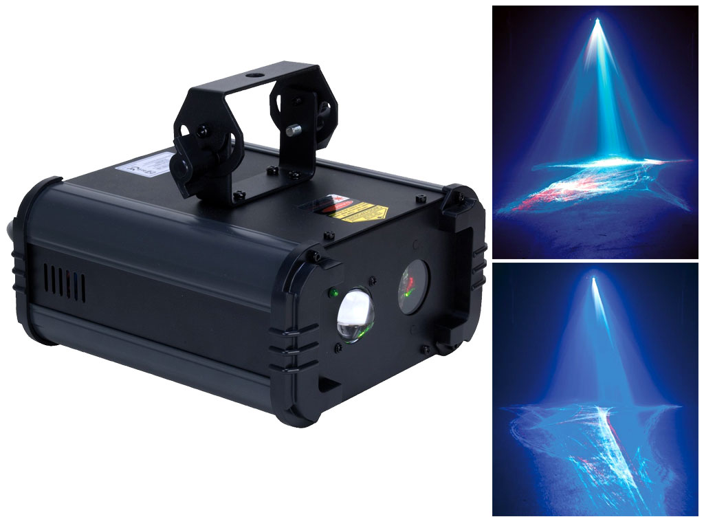 L' Atmospheric RG LED di American DJ, crea un effetto atmosferico psichedelico unico dai pattern laser "web type" rosso e verde e un LED blu scuro wash tutto integrato in un solo case. Questo effetto laser dispone di un laser rosso 80mW, un laser verde 30mW e un LED blu scuro 3W che crea la parte wash dell'effetto. L'Atmospheric RG LED è perfetto per i piccoli club o per gli intrattenitore itineranti perché è leggero, portatile, ha un'ampia copertura ed è facile da usare. Basta accenderlo e farlo funzionare in modalità Sound-Active attraverso i suoi programmi integrati. E' possibile collegare fino a 24 unità con il cavo DMX 3-pin ed i connettori IEC In/Out di alimentazione per creare un emozionante spettacolo laser su piste da ballo, pareti o dance-floor con o senza l'uso di nebbia.