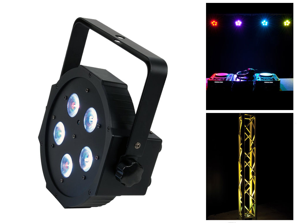 • Par Can sottile ultra brillante con 5 LED Tricolor da 3W