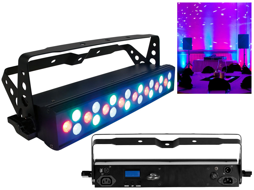 • Barra RGB ad alta resa con 24 LED da 1 W (8 Rossi, 8 Verdi e 8 Blu)