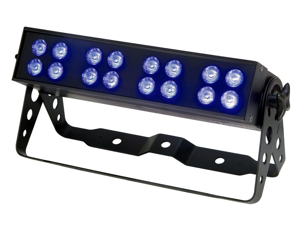 L'American DJ UV LED BAR 16 è perfetta per le performance sul palco, produzioni teatrali e installazioni di effetti speciali. Utilizza 16 LED UV da 1W a per un forte color washing sia che lo si utilizza per terra o appeso al soffitto con il suo sistema a doppia staffa.