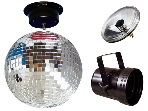 Il Mirror Ball Party Set è l'ideale per piccole feste in casa e include una sfera a specchio, un faretto con lampada, motorino e quattro cappellotti colorati.