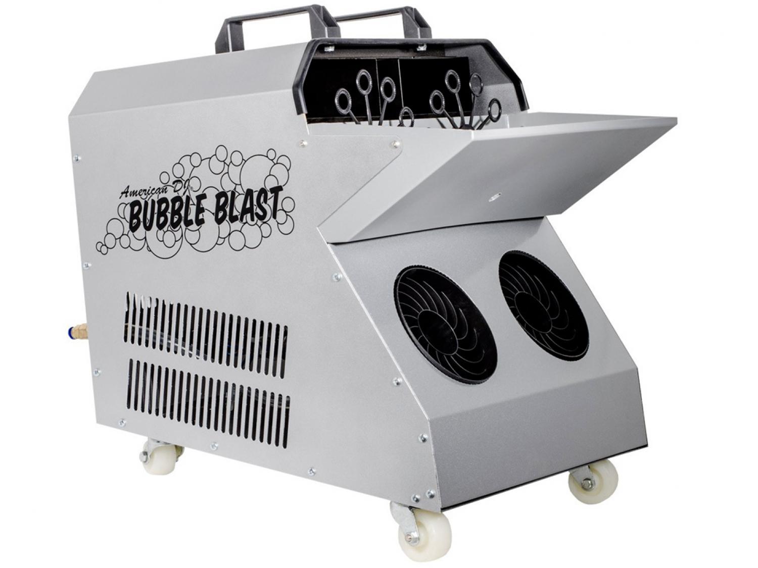 La macchina della bolle American DJ Bubble Blast è una macchina ad alto rendimento e, grazie alla tecnologia di uscita, il grande ventilatore a doppia ventola produce centinaia di bolle al minuto. Viene fornita con un timer remoto staccabile che permette di controllarla a distanza.