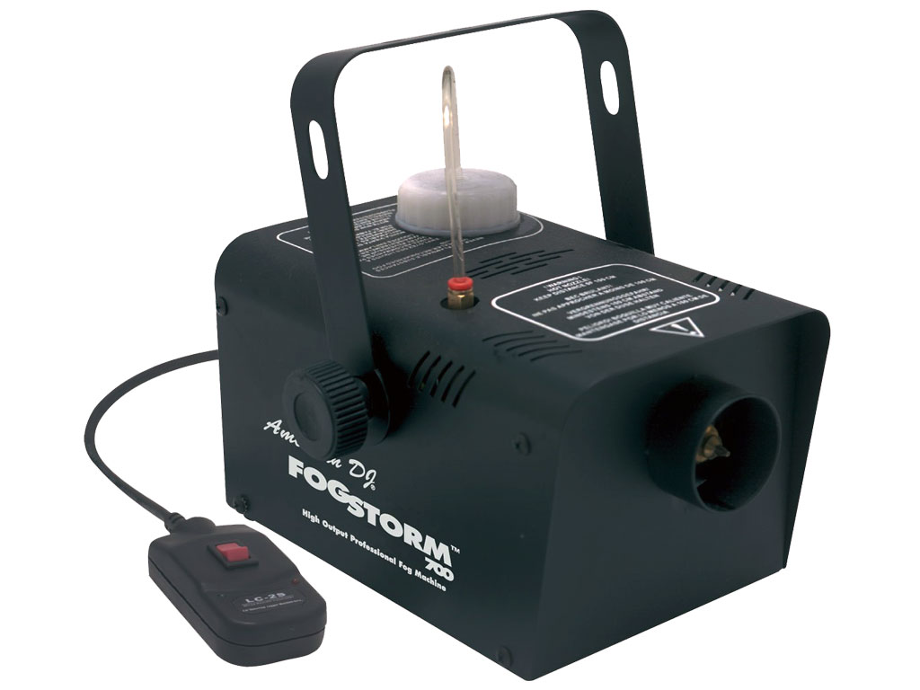 L' American DJ Fogstorm 700 è una macchina della nebbia da 700W molto abbordabile, ad alto rendimento, che emette 100 metri cubi di nebbia al minuto. The Fogstorm 700 macchina è dotata di un telecomando a cavo esterno e diun serbatoio del liquido da un litro. Riscalda in 8 minuti. La macchina della nebbia American DJ viene fornita con staffa di montaggio e pesa 3,6kg.