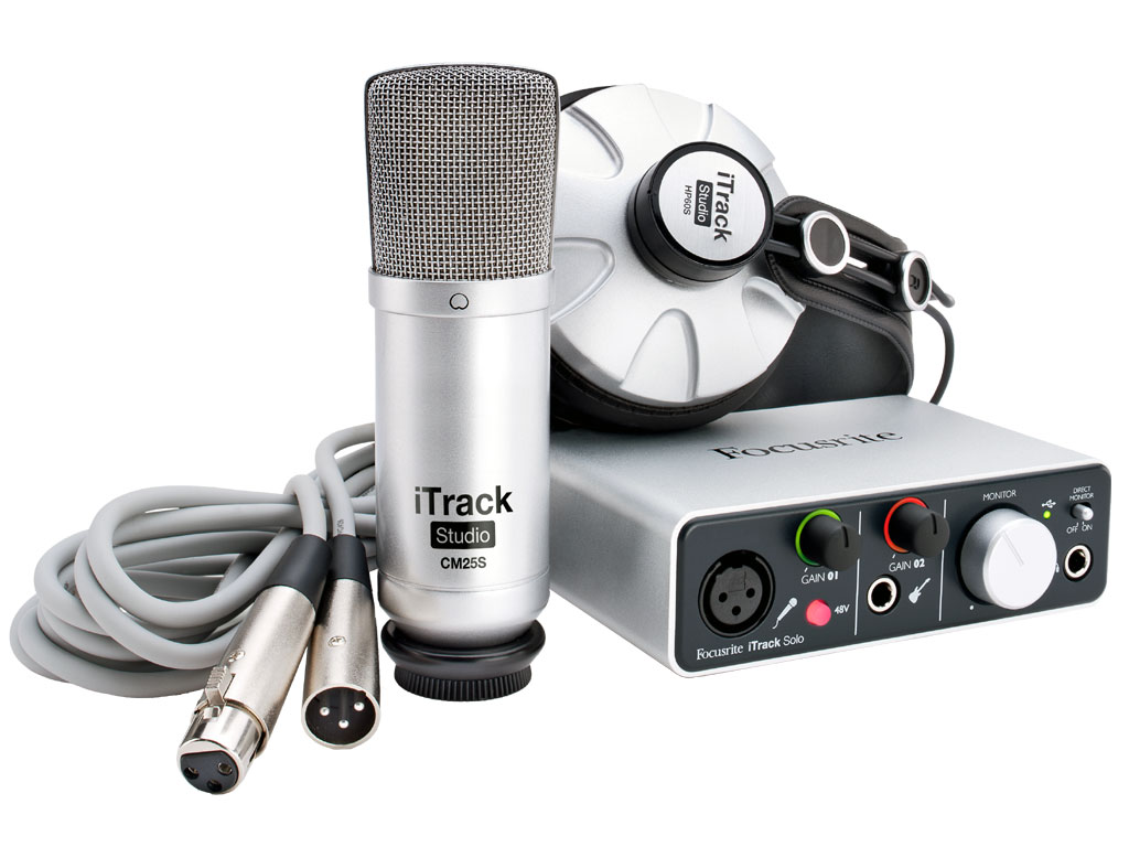 iTrack Studio include l'interfaccia iTrack Solo di Focusrite, dotata di due ingressi per la registrazione simultanea di strumento e voce - utilizzando il microfono a condensatore da studio incluso e la rinomata tecnologia Focusrite per la preamplificazione microfonica. Doppie uscite alimentano sia i monitor che le cuffie incluse per un accurato ascolto di ciò che si sta registrando. iTrack Solo assicura che tutto venga ripreso con alta qualità audio, con campionamento fino a 96kHz e 24-bit. Tramite il cavo con connettore a 30-pin è possibile la connessione ad un iPad e aggiungendo un adattatore lightning è possibile collegarsi anche ad un iPad 4 e iPad mini. Tramite USB è possibile anche il collegamento ad un computer Mac o PC. Il microfono a condensatore da studio CM25S incluso, fornito di cavo microfonico XLR, riprenderà in modo fedele praticamente qualsiasi strumento, dalla voce al pianoforte, alla chitarra acustica e molti altri. Le cuffie HP60S assicurano un monitoraggio di riferimento di qualsiasi cosa registriate. iTrack Studio è la soluzione ideale per la registrazione di qualità sul vostro iPad e rappresenta anche il passo iniziale verso la registrazione di qualità su computer grazie ai software di produzione musicale in dotazione come Ableton Live Lite e la suite Scarlett Plug-in con EQ, compressione e riverbero.