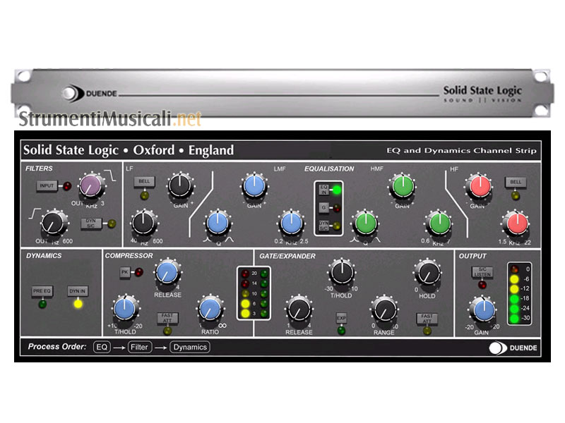 • Channel strip SSL con filtri, EQ serie E e G, processori di dinamica e Stereo Bus Compressor SSL