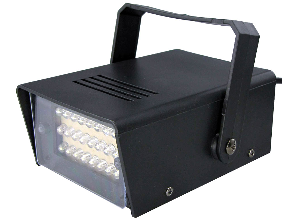 Un piccolo faro stroboscopico che utilizza, invece della classica lampadina, 24 LED bianchi da 5mm di diametro. Ideato per utilizzi amatoriali o per applicazioni sceniche più complesse. Il consumo risulta irrisorio e l'affidabilità altissima: la vita media dei led è di 50000 ore.
