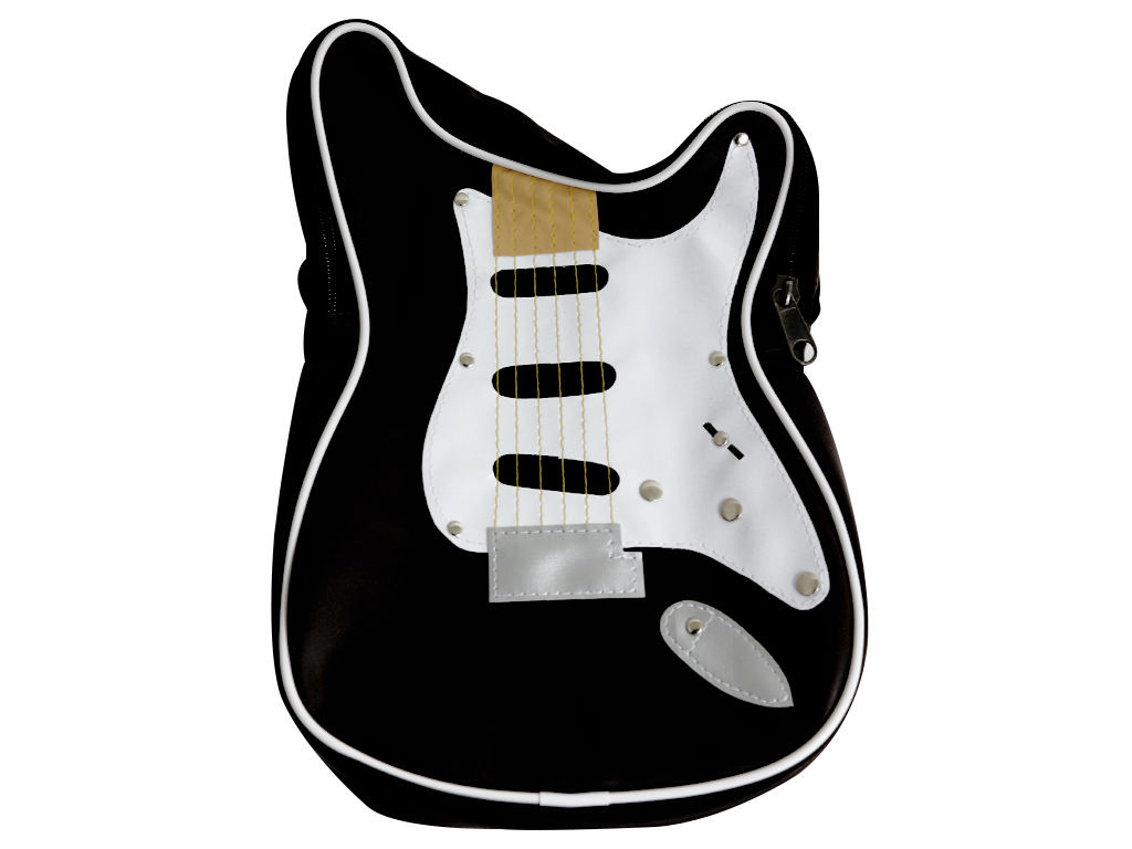 Borsa da viaggio in ecopelle ispirata nelle forme e nei disegni alle vere chitarre suonate dalle leggende internazionali della musica dagli anni '60 ad oggi. La borsa è dotata di una chiusura a zip nella parte superiore e di una tasca con chiusura zip nella parte posteriore.