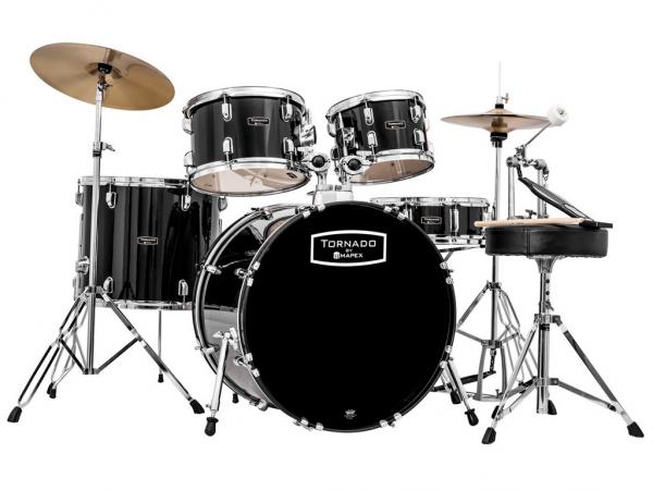 Le nuove Mapex Tornado hanno un hardware rinforzato, con cassa ad otto blocchetti, tom a sei ed i piedini della cassa telescopici. I fusti dei tamburi sono realizzati in Tiglio. Tutti i set, inoltre, includono rullanti Tornado in legno dello stesso colore della batteria e sono dotati di Charleston 14" e Crash da 16".