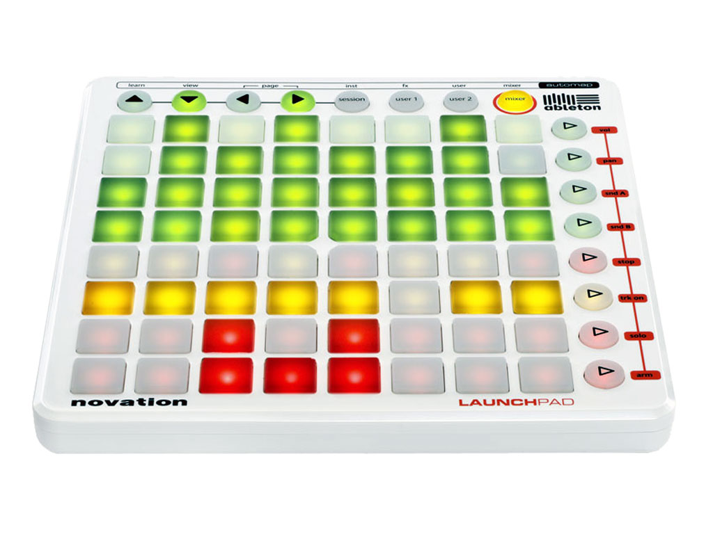 Progettato insieme da Novation ed Ableton, il nuovo Novation Launchpad consente di "suonare Live" nel vero senso della parola. Grazie alla sua griglia di pulsanti multicolore e pulsanti dedicati per lanciare le scene, Launchpad è realizzato appositamente per avviare e manipolare le clip in Live. Ogni pulsante può avere tre colori diversi, che consentono di riconoscere subito cosa è caricato (giallo), cosa è in riproduzione (verde) e cosa è in registrazione (rosso). Allo stesso modo l'interfaccia di Live indica quale sezione della Session View è attualmente controllata dal Launchpad. Questa comunicazione biunivoca assicura che il Launchpad ed Ableton Live siano sempre sincronizzati. Con Launchpad viene fornita una speciale versione di Ableton Live 8 "Launchpad Edition" per iniziare a comporre ed a suonare dal vivo con Ableton Live. Sia Live 7 che Live 8 sono interamente compatibili con Launchpad. Ma Launchpad non serve soltanto a lanciare le clip. Vai in modalità "mixer" e la stessa griglia di pulsanti controllerà il mixer di Ableton Live: puoi controllare il volume, il pan, le mandate, il solo, il mute e puoi armare le tracce per la registrazione. Utilizzando i pulsanti invece degli encoder, Launchpad ti consente di saltare fra i diversi livelli di otto canali per volta – l'ideale per controllare diverse mandate effetti. Launchpad è anche ottimo per costruire i beat – vai in "user mode 1" e i 64 pulsanti diventano drum pad triggers direttamente connessi ai Drum Racks di Ableton Live.