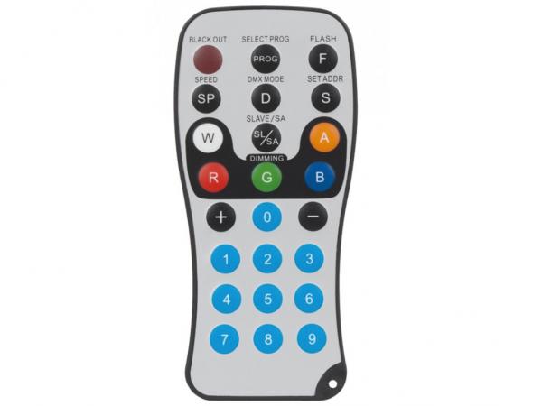 Telecomando senza cavo per un semplice controllo remoto di varie apparecchiature American DJ per illuminazione. Compatibile con Flat PAR CWWW9, Flat PAR CWWW18, Flat PAR QA5, Flat PAR QA12, Flat PAR QWH5, Flat PAR QWH12.