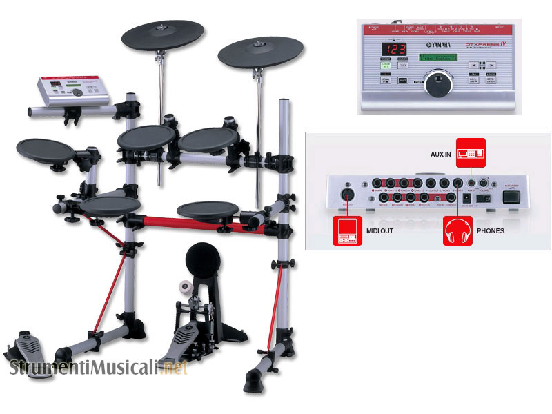 • Connections Trigger Input Jack 1, 5, 6, 7 (Standard Stereo Phone Jack L: Trigger, R: Rim Switch) Trigger Input 2/10, 3/11, 4/12, 8/9 (Standard Stereo Phone Jack L: Trigger, R: Trigger) Hi-Hat Controller Jack, OUTPUT L/MONO R Jack (Standard Phone Jack) PHONES (Standard Stereo Phone Jack), AUX IN Jack (Stereo Mini Jack), MIDI OUT, DC IN