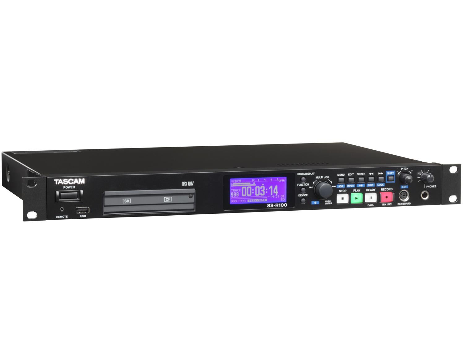 L'SS-R100 è un registratore a rack a stato solido ideale per sostituire registratori a cassette, CD o Minidisc. L'SS-R100 registra su SD, CF, o memoria USB in formato WAV o in MP3 per registrazioni di lunga durata. La tecnologia a stato solido consente di archiviare ore di registrazione su supporti affidabili ed economici e di trasferirle celermente su PC per editing, archiviazione o pubblicazione sul web. E' equipaggiato con ingressi sbilanciati, ingresso ed uscita digitale SPDIF con conversione della frequenza di campionamento. Un controller a cavo o una tastiera per computer possono essere utilizzati per rinominare file e per il controllo remoto. Sono poi disponibili funzioni standard come controllo del pitch, auto cue e molte altre funzioni.