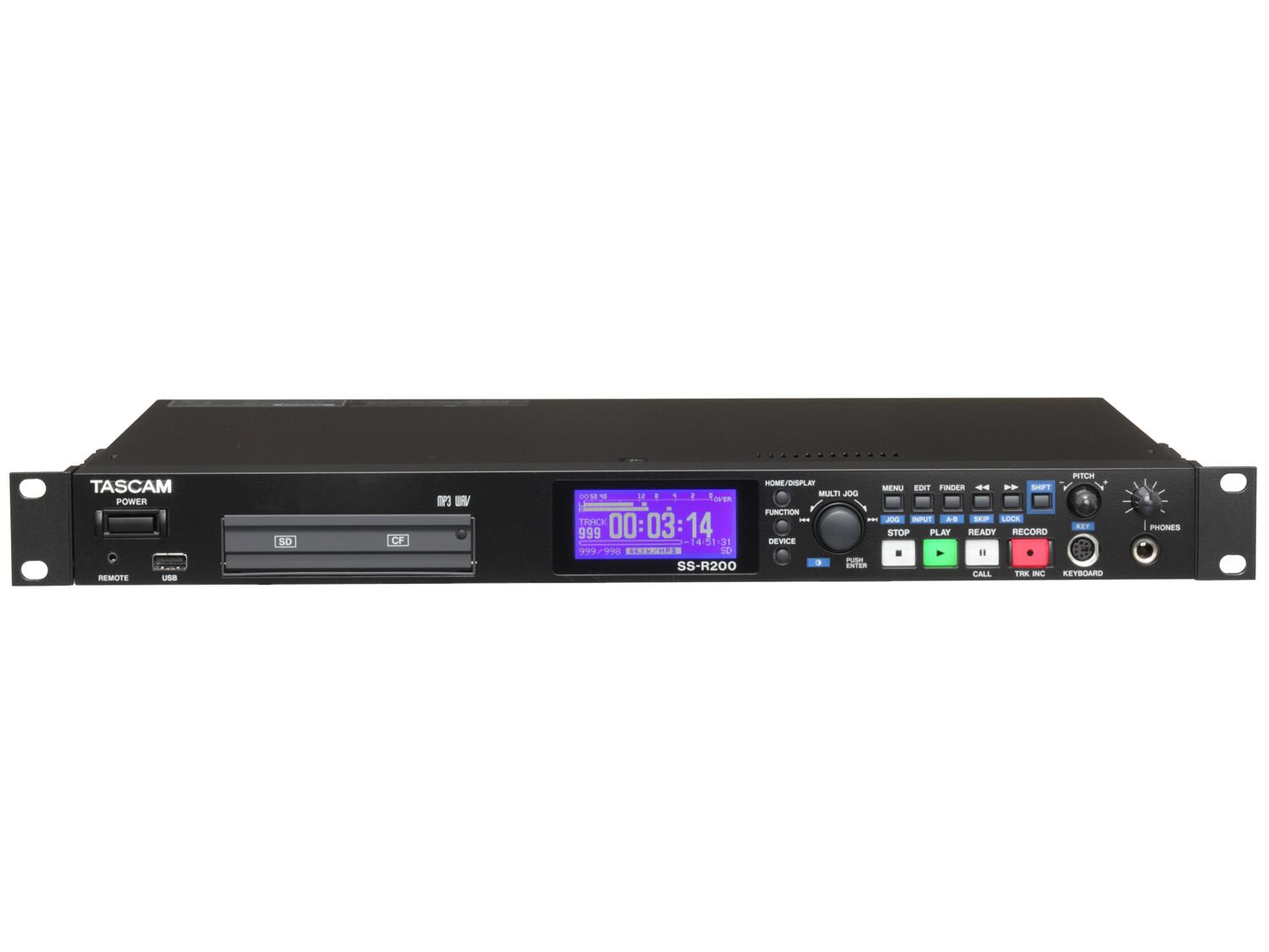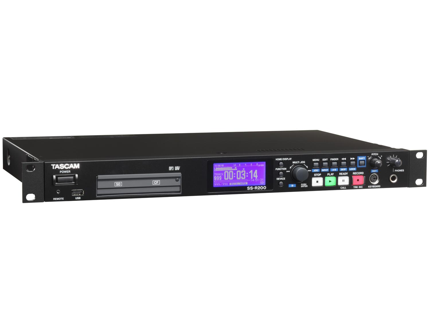 L'SS-R200 è un registratore a rack a stato solido ideale per sostituire registratori a cassette, CD o Minidisc. L'SS-R200 registra su SD, CF, o memoria USB in formato WAV o in MP3 per registrazioni di lunga durata. La tecnologia a stato solido consente di archiviare ore di registrazioni su supporti affidabili ed economici e di trasferirle celermente su PC per editing, archiviazione o pubblicazione sul web. E' equipaggiato con ingressi sbilanciati, ingresso ed uscita digitale SPDIF con conversione della frequenza di campionamento, RS-232 seriale e porta parallela. Un controller a cavo o una tastiera per computer possono essere utilizzati per rinominare file e per il controllo remoto. Sono poi disponibili funzioni standard come controllo del pitch, auto cue e molte altre funzioni.