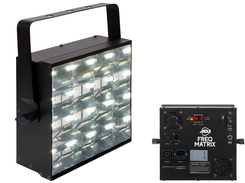 Aggiungi ancora più creatività al tuo lightshow con FREQ MATRIX di ADJ, la nuova rivoluzionaria strobo a LED con matrice a 16 zone. Questo nuovo effetto "2 in 1" unisce una strobo a LED ad una matrice a 16 zone per dare ai light designer la possibilità di creare giochi di luce dinamici ed emozionanti. FREQ MATRIX offre il pieno controllo DMX (1, 2, 16 o 18 canali), regolazione dimmer velocità strobo e giochi di luce. Si può utilizzare FREQ MATRIX anche in modalità attivazione musicale o controllare manualmente la velocità e l'intensità della strobo tramite i potenziometri sull'apparecchio. FREQ MATRIX è equipaggiata con sedici luminosi LED bianchi da 5 Watt per un assorbimento massimo di 107 Watt.