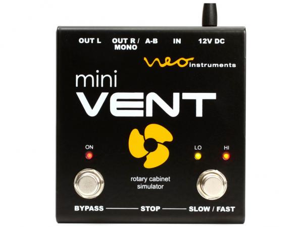 Basato sul celebre pedale Ventilator di Neo Instrument, il Mini Vent è un pedale compatto che simula il suono del mitico Leslie 122. Il doppio interruttore a pedale consente di selezionare le modalità Stop, Slow, Fast, e Bypass del pedale. Le uscite stereo consentono di splittare il segnale su due amplificatori, due canali del mixer, o ad altri effetti. Questo pedale è perfetto per chitarra, tastiere ed altro ancora.