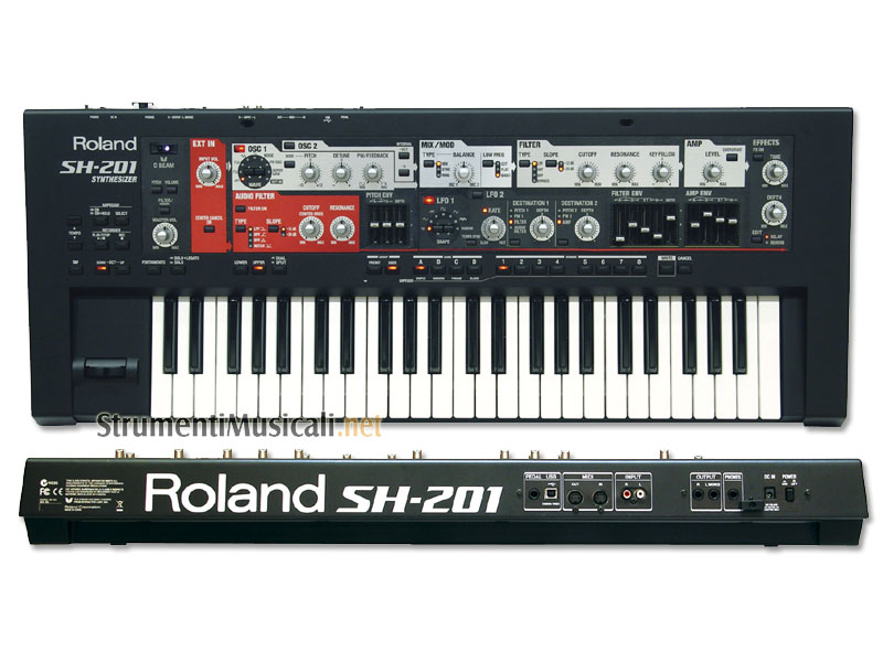 Se sei nuovo ai sintetizzatori, ecco il più facile e divertente strumento a modelli analogici sul mercato: SH-201 di Roland. Se sei un professionista, SH-201 ti farà ricordare il motivo per cui ti sei innamorato dei sintetizzatori al primo colpo. Semplicemente, SH-201 è fantastico da suonare! E' grande, grazie anche a caratteristiche quali la famosa forma d'onda Roland Supersaw, Feedback Oscillator, D Beam, e altre. Sh-201 é inoltre provvisto di ingresso esterno, così da poter gestire Cd, Mp3, o altri strumenti e periferiche esterne.