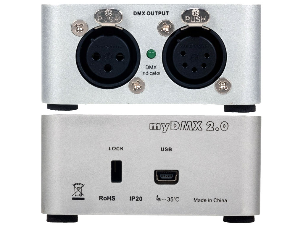 Il myDMX 2.0 è un nuova unità DMX hardware/software indipendente di American DJ disponibile per sistemi operativi Windows e Mac OSX. La combinazione di un nuovo generatore di effetti "drag & drop", la nuova tavolozza preimpostata e la compatibilità OSX ti aiuteranno a creare ed eseguire scene e spettacoli in pochi minuti. Con una fantastica interfaccia hardware e grafica di nuova progettazione, myDMX 2.0 rappresenta quanto di più avanzato nel campo del controllo luci DMX.