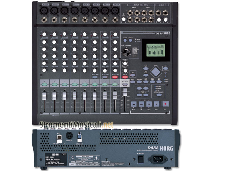 Il D888 registra a 16-bit 44.1 kHz in formato non compresso. Le 8 tracce possono essere messe in play o in registrazione simultaneamente. Dal momento che ciascuna traccia ne ha 8 virtuali il registratore ha una capacità di 64 tracce alle quali si aggiunge anche una master track per il mix down quando tutte le 8 tracce sono piene. Ogni volta che si registra la master track, un file stereo WAV viene creato automaticamente . Il D888 in oltre ha tutte le funzioni di edit che ci si aspetta in un sistema digitale. Punch-in/out e operazioni di copy e swap facili da effettuare. Per ciascuna song si possono memorizzare 4 locate points da usare nelle operazioni di editing e inoltre possono essere salvati 100 mark points per muoversi velocemente nelle sezioni prescellte della song. Anche se il D888 è un registratore digitale, l'editing non è distruttivo poichè sono contemplate funzioni Undo e Redo. Si possono avere tutti gli effetti desiderati, con 11 tipi di effetti master digitali di qualità professionale. La regolazione degli effetti può essere memorizzata in ciascuna song. Ogni canale ha un equalizzatore a 3 bande .