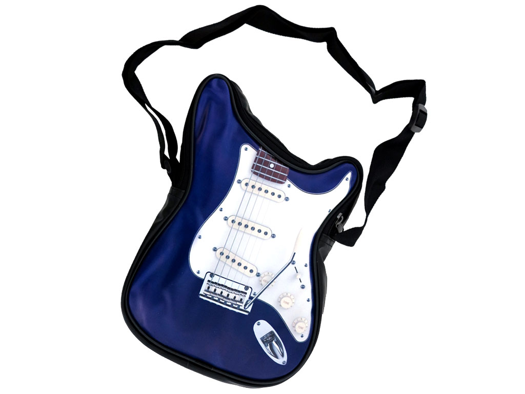 BORSA A FORMA DI CHITARRA BLU CON BATTIPENNA BIANCO