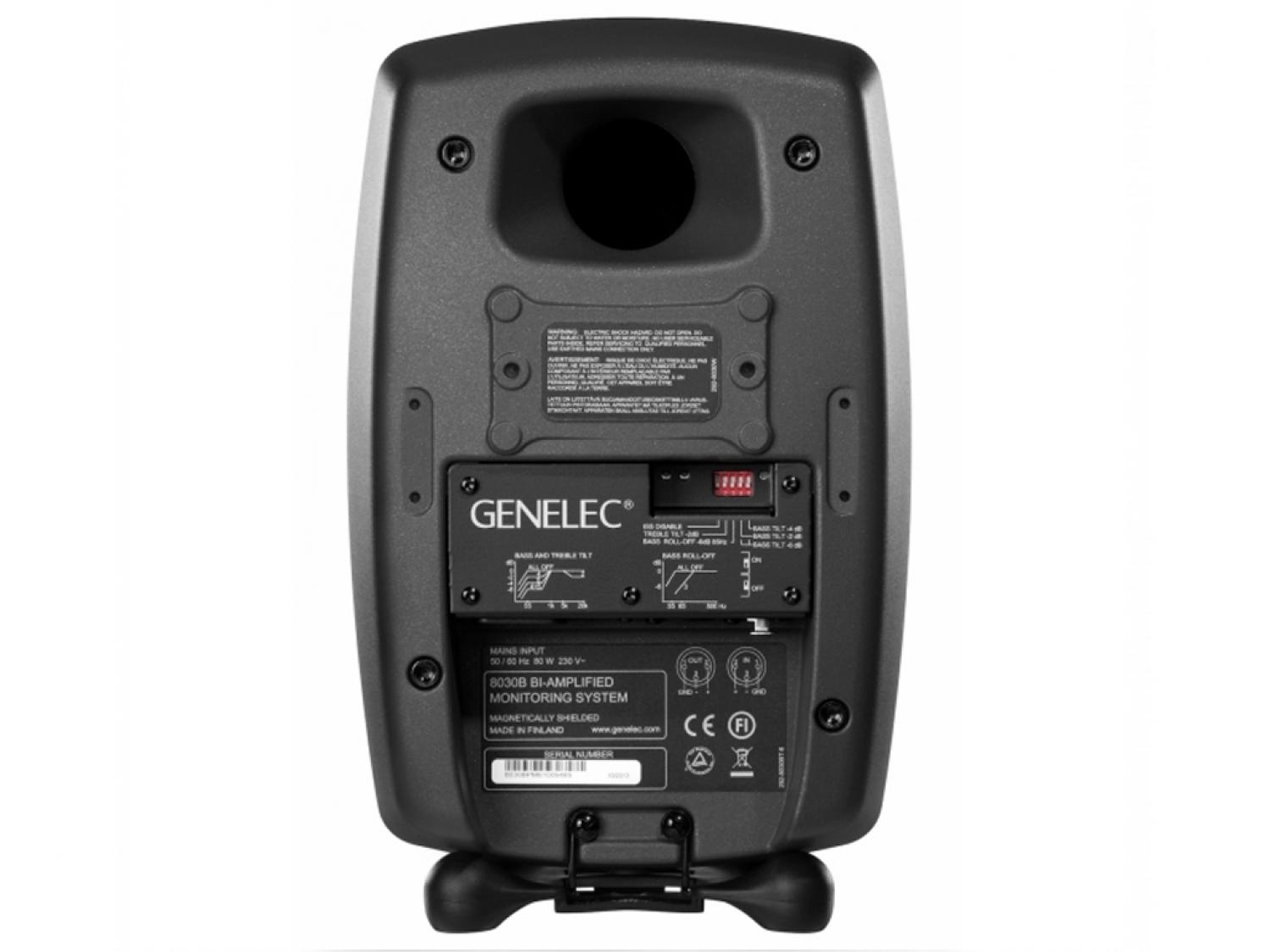 I monitor compatti biamplificati Genelec 8030B sono ideali quando è necessaria un'ampia risposta in frequenza anche in spazi di dimensioni ridotte. Gli usi più comuni sono come nearfield in project/home studio, workstation e impianti surround. La funzione ISS (Intelligent Signal Sensing) riduce il consumo elettrico del sistema a meno di 0.5 watt mettendo il monitor in standby automaticamente. Il condotto reflex è stato progettato per fornire bassi chiari e definiti, in assenza di distorsioni, compressioni o disturbi. Se si necessita di maggiore pressione sonora ed una risposta in frequenza più aperta verso il basso, il naturale complemento dell'8030B è il subwoofer 7050B per sistemi stereo, o 7060B per sistemi di ascolto surround. La combinazione tra il controllo della guida d'onda, Genelec Directivity Control Waveguide (DCW), gli angoli arrotondati e la sottile curvatura sia del fronte che del cabinet MDE (Minimum Diffraction Enclosure), comportano una risposta in frequenza sorprendentemente flat sia in asse che fuori asse. L'8030B è dotato di schermatura magnetica, circuito di protezione da sovraccarichi e di un sistema di correzione ambientale. I fori sul retro permettono un corretto e sicuro montaggio a parete. Ogni 8030B è dotato di Iso-Pod (Isolation Positioner/Decoupler), un supporto in grado di eliminare eventuali colorazioni sonore disaccoppiando il monitor dalla superficie su cui viene posizionato. Iso-Pod permette inoltre di angolare il monitor per puntarlo perfettamente in asse verso l'ascoltatore.
