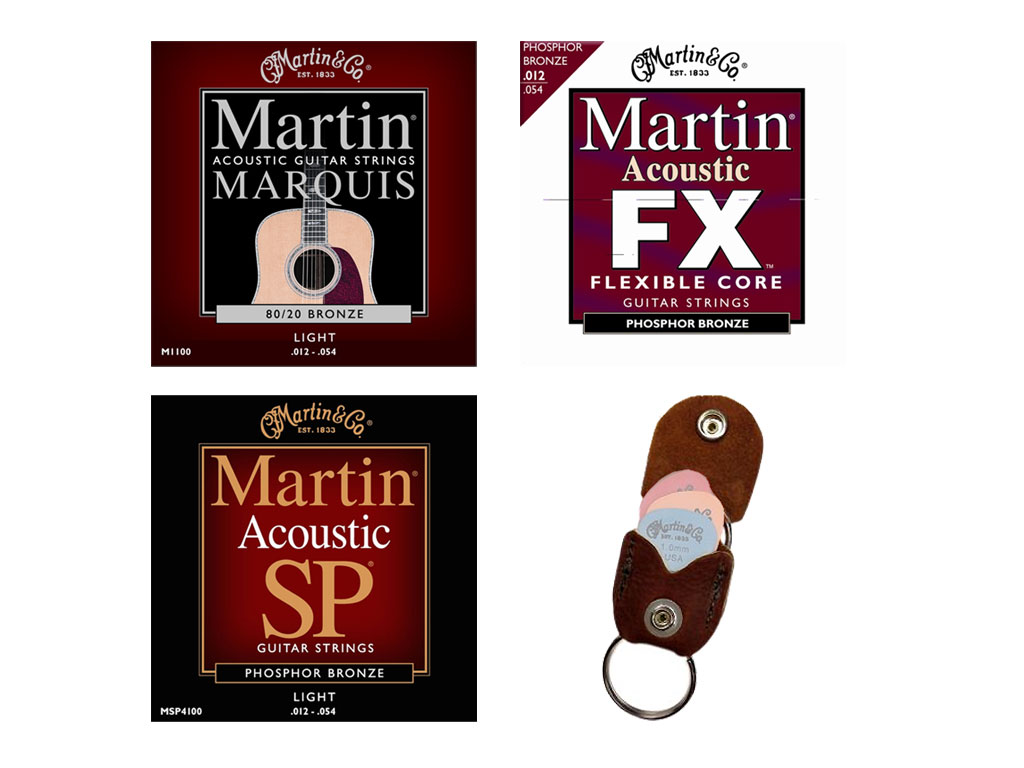 Kit di corde per chitarra acustica composto da una muta Martin Marquis Light, una muta Martin Acoustic FX, una Martin Acoustic SP ed un porta plettri - portachiavi.