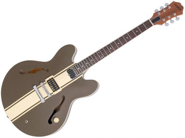 La Epiphone Tom Delonge Signature ES-333 è stata progettata secondo le precise specifiche del chitarrista dei Blink 182, Tom Delonge. Questo archtop combina un design semi-hollowbody con la forza bruta di un pickup humbucker made in USA Gibson Dirty Fingers, in un modello signature unico nel suo genere.