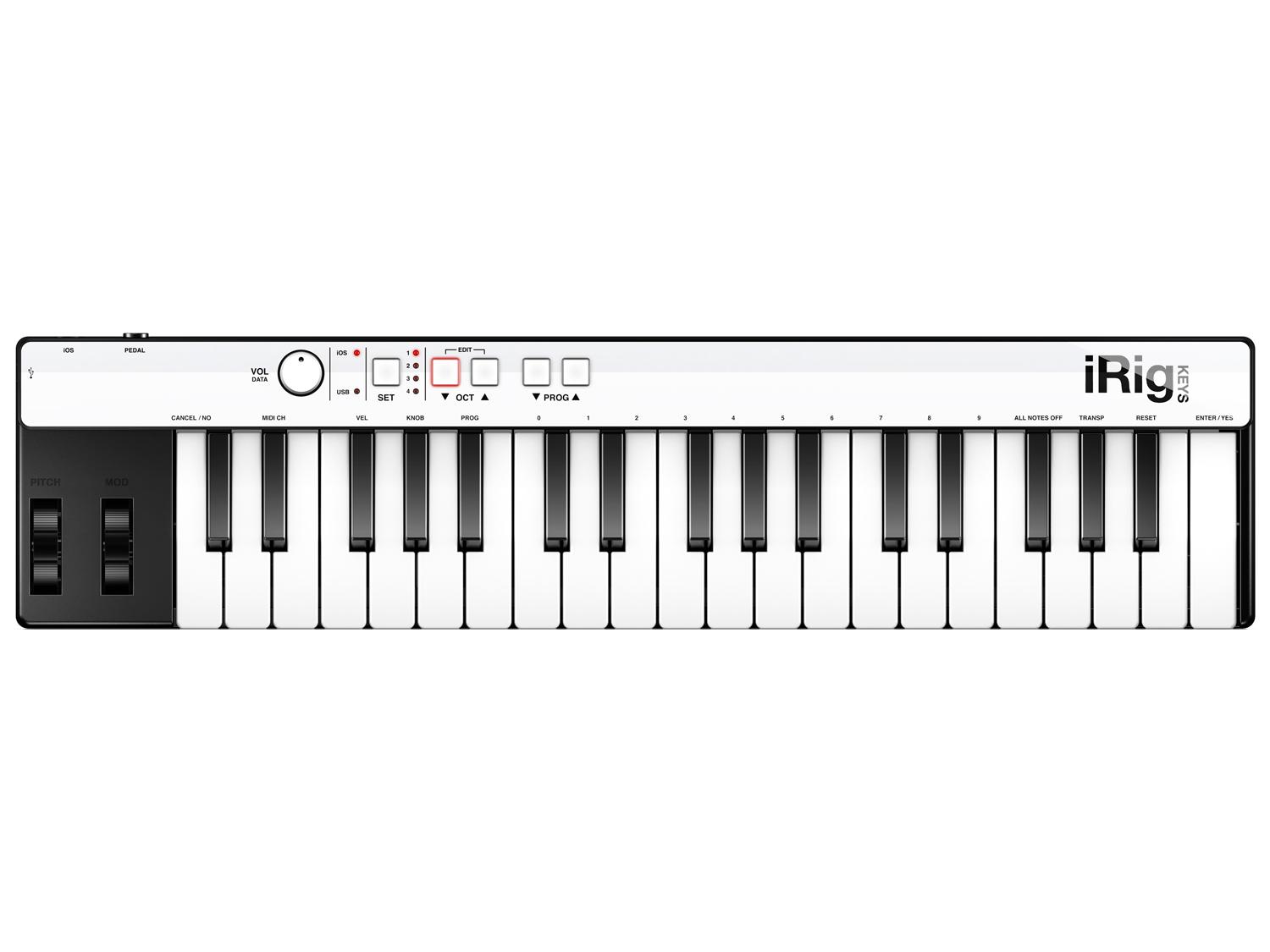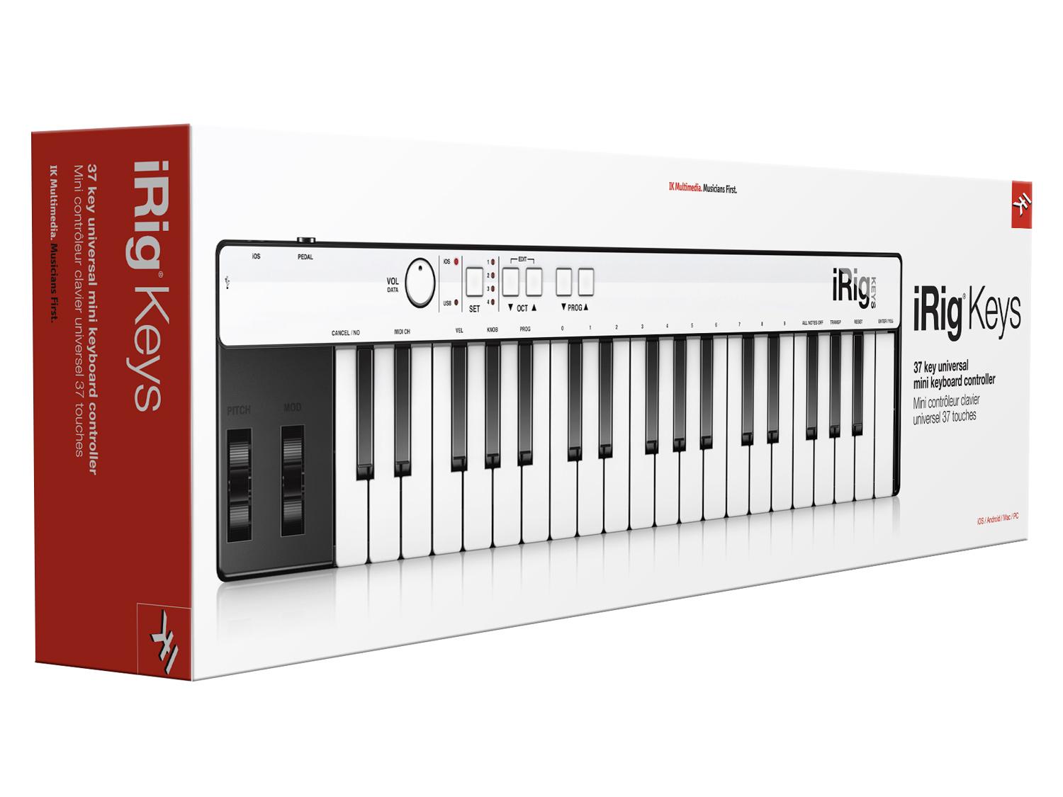 iRig KEYS è la prima tastiera controller MIDI universale, ultra-sottile e altamente portatile, per iPhone, iPod touch, iPad e Mac / PC. iRig KEYS si collega direttamente al connettore a 30 pin del dispositivo iOS o alla porta USB del vostro Mac / PC. Dispone di 37 mini-tasti sensibili alla velocity, estensione di 3 ottave più una nota, occupa uno spazio minimo sulla scrivania e può essere facilmente inserita in uno zaino o in un bagaglio a mano. Quando collegata ad un iPhone / iPod touch / iPad, può essere alimentata dal dispositivo e, per sessioni musicali più lunghe, può essere alimentata dalla porta USB del vostro Mac / PC.