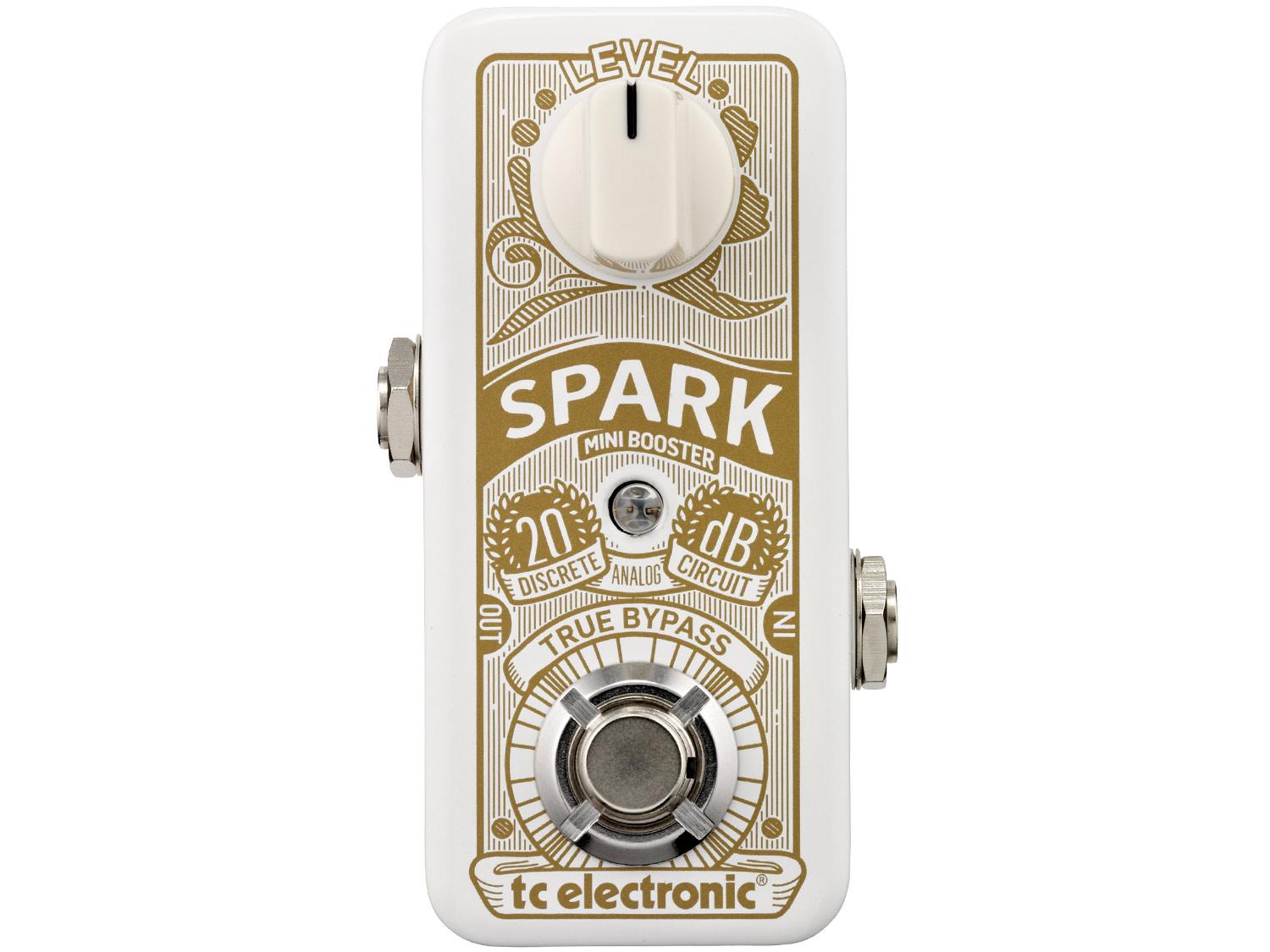 TC Electronic miniaturizza il suo Spark, ne sintetizza le caratteristiche al minimo indispensabile e lo impacchetta in un contenitore capace di entrare in un taschino. Non contenta, gli regala una circuitazione totalmente trasparente basata su componenti discreti interamente analogici ed un nuovo sistema di switching intelligente. Lo Spark Mini Booster è in grado di generare un incremento del segnale fino a 20dB, ingrossando il suono e aggiungendo una naturale compressione man mano che il preamp dell'amplificatore a cui è collegato si avvicina al punto di saturazione.
