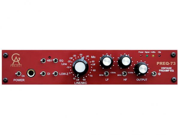PREQ-73 di Golgen Age Project è un preamplificatore ed equalizzatore di alta qualità ad un canale, costruito esclusivamente con componenti discreti come resistenze, condensatori e transistor, e dotato di 3 trasformatori indipendenti per l'ingresso microfonico, ingresso di linea e uscita. Equipaggiato con un circuito molto simile alla sezione di preamplificazione ed equalizzazione del celebre modulo 1073, IL PREQ-73 è in grado di riprodurre le calde sonorità vintage, molto ricercate oggi, che rendono registrazioni di voci e strumenti estremamente piacevoli all'ascolto. PREQ-73 è pensato per qualsiasi sorgente sonora, non importa sia essa un microfono, un sintetizzatore, una chitarra o un basso elettrico. Offre un guadagno massimo di 80dB sull'ingresso microfonico e da -20 a + 10dB sull'ingresso di linea, nonchè di un ingresso ad alta impedenza per strumenti. L'impedenza dell'ingresso microfonico è regolabile a 300 o 1200 Ohm, rendendolo perfettamente abbinabile alla maggior parte dei microfoni. E' inoltre presente un pulsante phantom power 48V, un pulsante EQ on/off, un pulsante per l'inversione di fase e un indicatore di livello a LED. Il controllo del livello di uscita consente una regolazione precisa del guadagno e di caricare lo stadio di amplificazione principale per dare maggior carattere al suono senza provocare distorsioni del segnale.