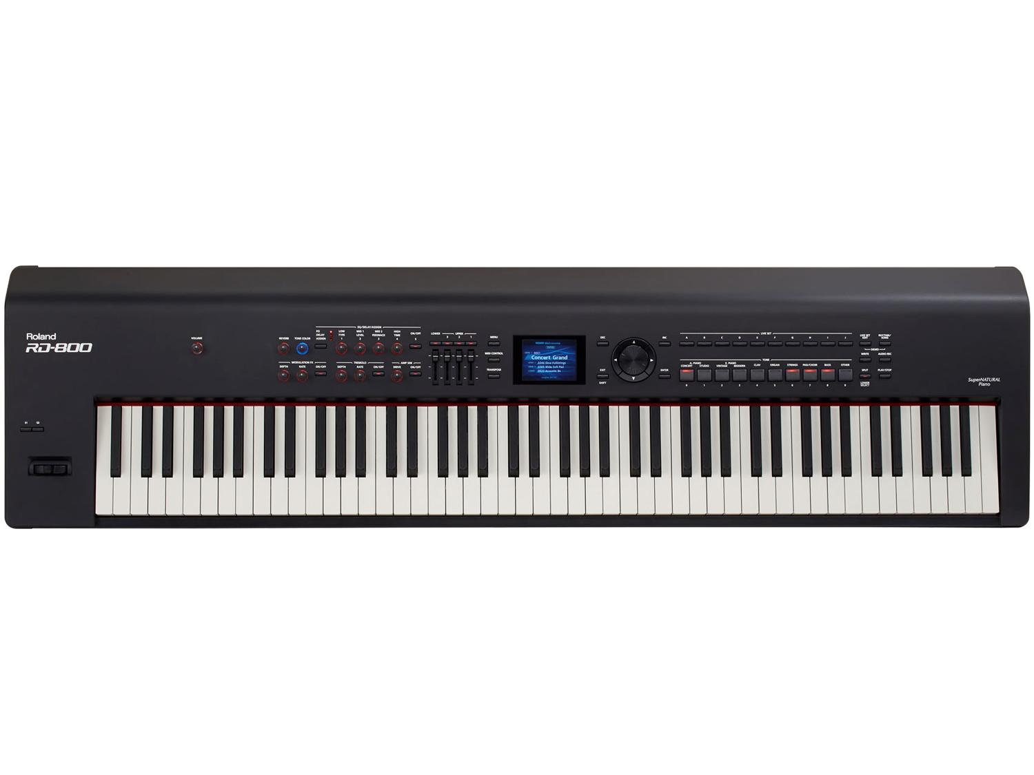 Da oltre 25 anni, la famosa serie RD di Roland è un riferimento per gli artisti più quotati. RD-800 rappresenta l'evoluzione di questa serie, con un look più moderno e molti miglioramenti nel suono, nel tocco e nella versatilità. La selezione di pianoforti di pregiatissimi è stata ampliata, mentre la tastiera a 88 tasti pesati offre l'ultima meccanica Roland con pesatura progressiva. Troviamo poi una vasta gamma di piani elettrici, organi, synth e molti altri suoni professionali per non porre limiti alle vostre performance. Le operazioni on-stage sono semplicissime, grazie all'interfaccia semplicissima che include un display a colori, controlli real-time e il nuovo parametro Tone Color, per dare risalto al suono con un solo gesto. Completo delle migliori tecnologie Roland, RD-800 offre performance di altissimo livello e massima versatilità in un solo incredibile strumento.