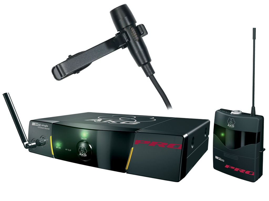 Il kit microfonico wireless per voce AKG WMS40 è formato dal ricevitore SR40, compatibile con tutti i trasmettitori dei sistemi WMS40 e della serie Microtools, dal trasmettitore PT40 PRO e da un microfono Lavalier AKG CK55. Il telaio da mezza unità rack da 19" del ricevitore è adatto per il montaggio a rack. Il ricevitore SR40 Single è dotato di un canale di ricezione e funziona su una frequenza portante fissa, stabilizzata al quarzo, nella gamma UHF. Il trasmettitore PT40 PRO con tecnologia High Definition Audio Performance assicura il leggendario, realistico suono AKG ed una trasmissione audio perfetta. Funziona per almeno 30 ore con una sola batteria AA, risparmiando sui costi, massimizzando l'affidabilità e riducendo al minimo lo stress sul palco. Acquistando il cavo opzionale MK/GL il kit diventa un trasmettitore professionale per strumenti. Il kit è disponibile unicamente nella frequenza 864.850 MHz.