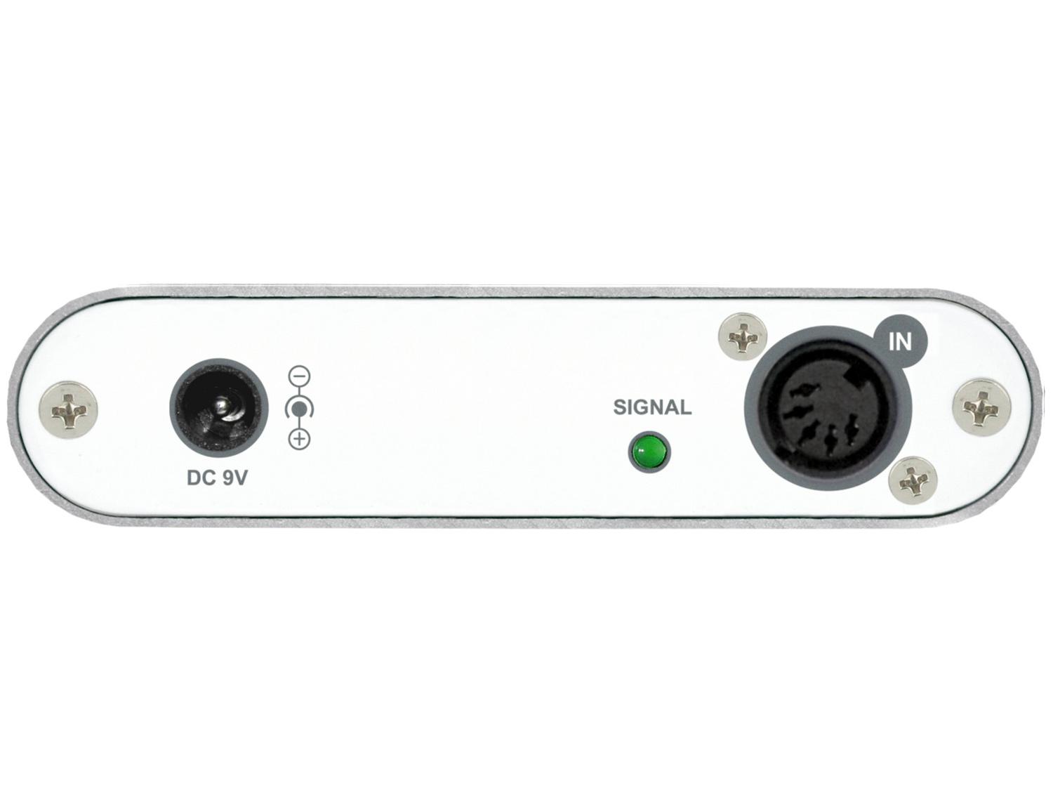 mikroTHRU è una pratica MIDI Thru-Box estremamente portatile che dispone di un singolo ingresso MIDI su un lato e di 4 uscite MIDI sul lato opposto. mikroTHRU invia tutti i segnali MIDI in ingresso dal MIDI input ad ognuna delle 4 uscite MIDI e rappresenta la soluzione ideale per inviare in contemporanea il segnale MIDI da un unico device (ad esempio una tastiera o un controller) a più dispositivi (come ad esempio un computer con una DAW e un modulo esterni). mikroTHRU ha in dotazione l'alimentatore esterno e prevede il monitoring del segnale in ingresso tramite LED.