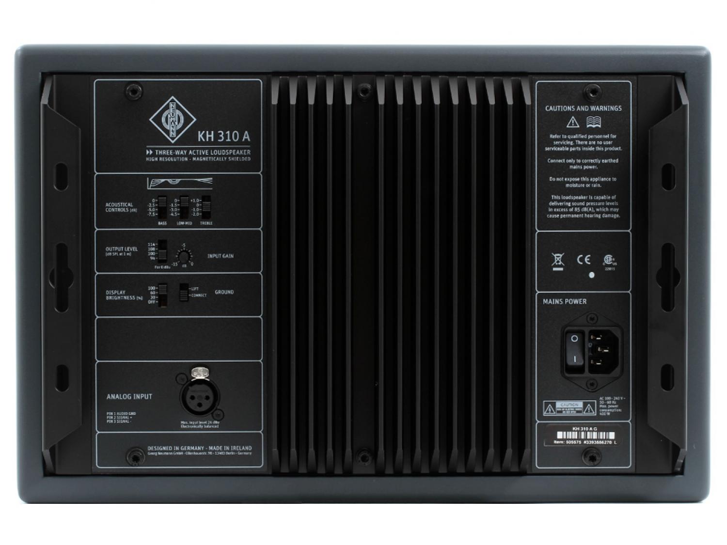 Il diffusore KH 310 A si basa su tre driver, uno per le alte frequenze, uno per le medie e uno per le basse, simulati nella progettazione con tecniche informatizzate e poi realizzati direttamente su rigorose specifiche Neumann. Nasce da un'attenta ottimizzazione dovuta a simulazioni acustiche e una serie infinita di misure ambientali tese a restituire una risposta in frequenza estremamente lineare nella riproduzione di tutta la gamma. I bassi risultano accurati grazie al woofer da 8,25", scendendo fino a 34 Hz, anche grazie al cabinet che lavora in sospensione pneumatica e agli amplificatori in classe AB che rispondono velocemente ai transienti. Le medie frequenze, essenziali per la voce e il parlato, sono riprodotte con una precisione eccezionale grazie al midrange a cupola morbida da 3". Le alte sono gestite da un tweeter a cupola morbida in lega-tessuto da 1" alloggiato in una guida d'onda ellittica, di tipo Mathematically Modeled Dispersion (MMD), che controlla e allarga la dispersione angolare. Tutto ciò assicura risultati eccellenti, un suono autentico, ricco di dettagli, e un campo d'ascolto gradevolmente morbido e ampio, minimizzando le riflessioni sul piano verticale.