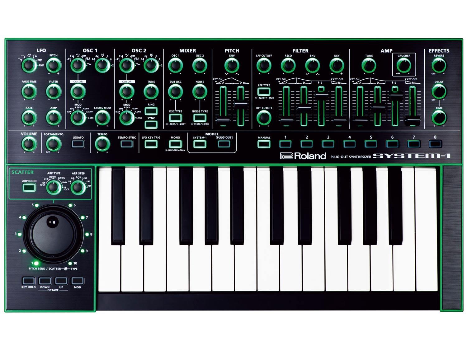 Negli anni '70 Roland lanciò il SYSTEM 100, il SYSTEM 100M, ed il leggendario SYSTEM 700. Questi sintetizzatori modulari e semi-modulari, sono durati fino ai giorni nostri grazie alla loro flessibilità e specificità del suono. Ispirato ai suoi predecessori, SYSTEM-1 offre la massima flessibilità ed accessibilità ed un'ampia gamma di suoni, dal carattere inconfondibile che ha definito il suono dei sintetizzatori Roland negli ultimi 40 anni. Il System-1 è in grado di controllare e persino ospitare - riproduzioni software di classici sintetizzatori Roland. Proprio così, System-1 consente di accedere alle versioni plug-in di leggendari sintetizzatori Roland, e possono essere ospitati nello stesso System-1, senza bisogno del computer. È anche possibile passare dai suoni interni del System-1 e quelli del plug-in ospitato. Roland chiama questa magia "PLUG-OUT​​".