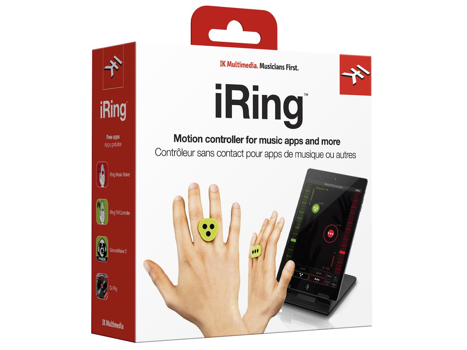 Da oggi è possibile controllare le applicazioni musicali e gli effetti senza toccare il dispositivo con il controller touchless iRing per iPhone, iPad e iPod touch. Il nuovo iRing utilizza i gesti delle mani per controllare i parametri degli effetti e degli altri elementi nelle applicazioni musicali, consentendo di creare musica splendida e spettacolare in un modo incredibilmente divertente, semplicemente muovendo le mani di fronte al tuo dispositivo. Iring usa un riconoscimento dell'immagine avanzato brevettato, un motion control ed una precisa tecnologia di posizionamento geometrico per dare il controllo dei parametri assegnabili all'interno delle applicazioni. Utilizza la fotocamera frontale del dispositivo per determinare la posizione esatta degli anelli, e riconosce e segue il movimento del pattern lineare o triangolare degli anelli Iring consentendo di controllare fino a sei parametri contemporaneamente.