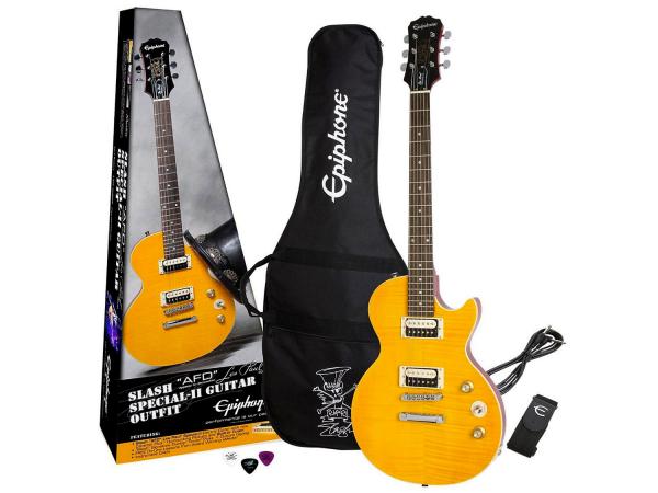 Epiphone è orgogliosa di presentare la Chitarra Slash "AFD" ("Appetite for Destruction") sia per principianti che per professionisti, una Les Paul Special II progettata da Slash nel bel colore classico Appetite Ambra, corredata di una gigbag premium, plettri con la firma di Slash e le lezioni gratis online di eMedia. Slash è entrato a far parte della Rock and Roll Hall of Fame per i suoi iconici assoli di chitarra con i Guns N' Roses ed è anche uno dei massimi utilizzatori di Les Paul. Epiphone è Slash hanno realizzato questo "AFD" Les Paul Guitar Outfit per rendere disponibili a tutti degli strumenti professionali a prezzi accessibili.