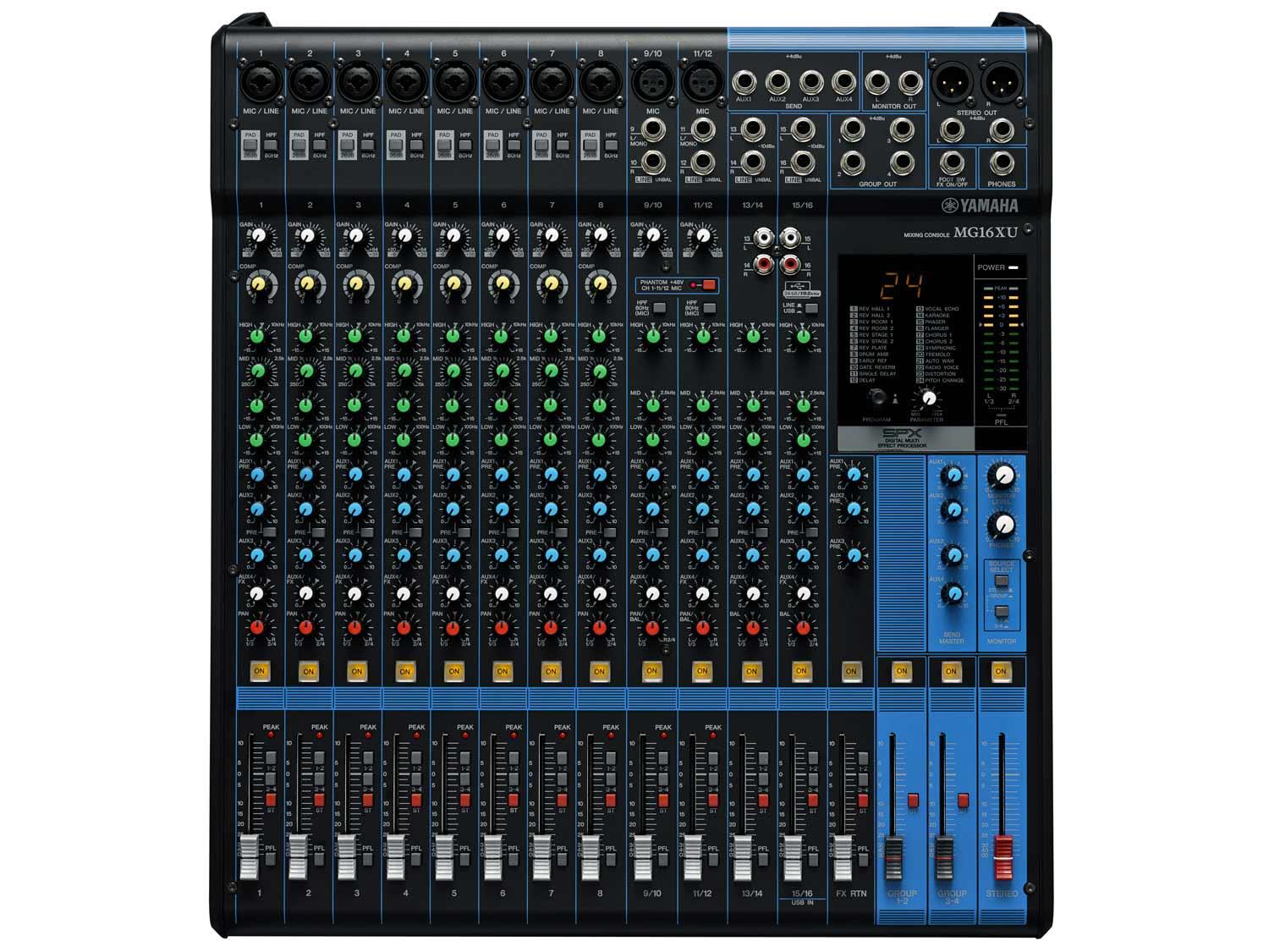 Per un controllo più preciso e per valorizzare il tuo suono, i modelli XU della serie MG sono dotati di una serie di rinomati effetti Yamaha SPX. Caratterizzati da Chorus, Flanger, Distorsioni, Riverbero e Delay ad alta risoluzione, tutti con parametri modificabili, sono gli stessi processori multieffetti utilizzati sulle console di missaggio Yamaha di fascia alta, e forniscono gli strumenti necessari per elevare i vostri mix ad un livello superiore.