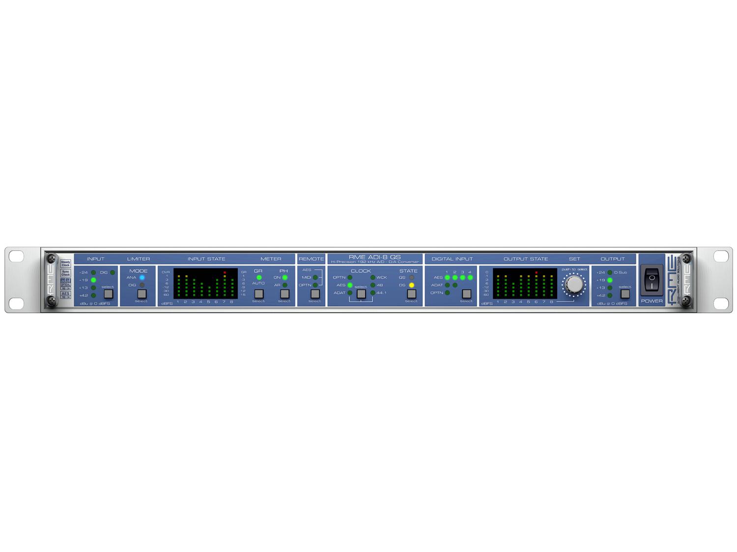 L'ADI-8 QS è un convertitore hi-end ad 8 Canali che integra circuiti analogici eccellenti con una latenza AD/DA estremamente bassa grazie all'ultima generazione di chip convertitori. Insieme a SteadyClock, il QS offre una conversione AD e DA di altissima qualità. Limiter analogici e digitali, 4 livelli hardware di riferimento fino a +24 dBu, AES/EBU e ADAT I/O (MADI I/O opzionale) ad una frequenza di campionamento fino a 192 kHz, controllo remoto via MIDI, regolazione digitale degli ingressi e delle uscite, controllo del volume per tutte le 8 uscite, sia separatamente che globalmente, modalità digital thru, etc. Queste e tante altre caratteristiche rendono il QS veramente unico.
