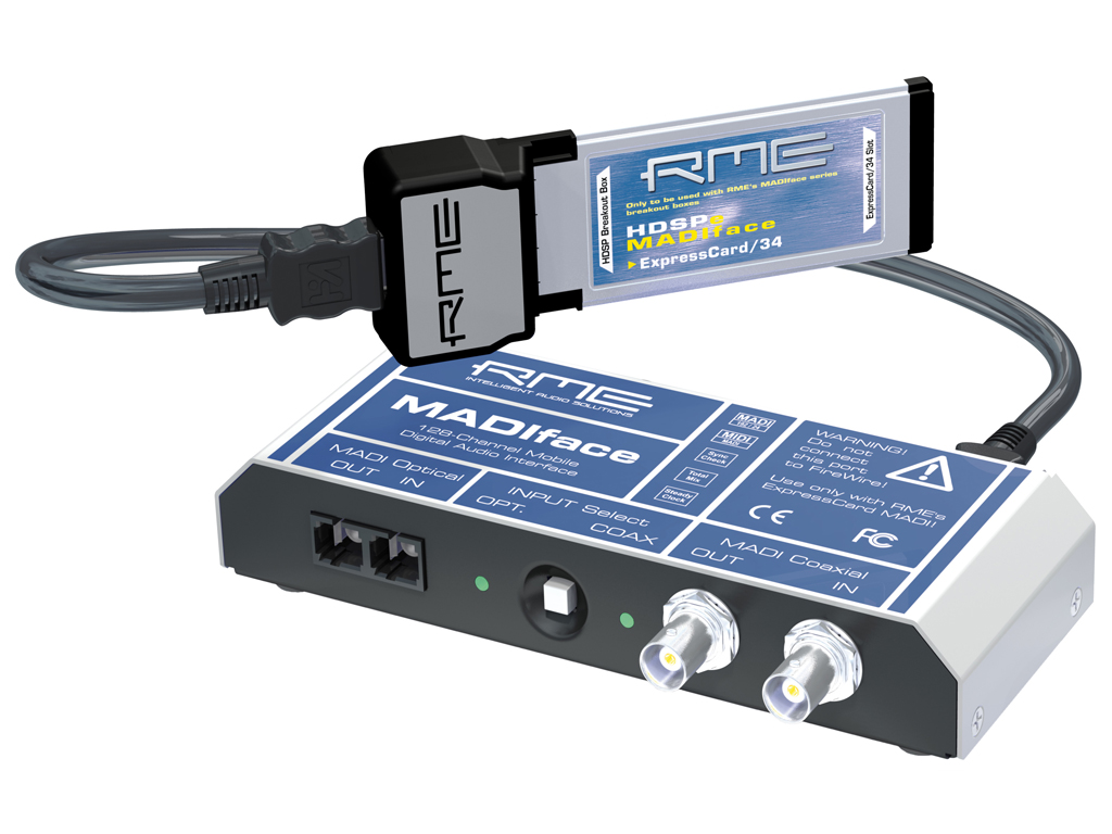 La HDSPe ExpressCard MADI di RME è un'autentica soluzione PCI Express che trae vantaggio da tutte le caratteristiche del nuovo formato, con un conseguente significativo incremento di prestazioni nella gestione dell'audio multitraccia. Basata su una scheda HDSPe ExpressCard MADI e un piccolo Breakout Box, la MADIface offre tutta la potenza del protocollo MADI: 64 canali in ingresso e 64 canali in uscita, frequenza di campionamento fino a 192 kHz, trasmissione "in MADI embedded MIDI", TotalMix controllabile anche in via remota e tutte le caratteristiche della "sorella maggiore" HDSPe MADI, così come tempi di latenza ridottissimi e basso carico della CPU. Per garantire una portatilità ancora maggiore, il breakout box viene alimentato direttamente dalla scheda ExpressCard, non è quindi necessario alcun alimentatore esterno. La MADIface è pienamente compatibile con qualsiasi dispositivo con interfaccia MADI integrata. Naturalmente può essere utilizzata in combinazione con tutti i prodotti RME della serie MADI. Il supporto completo per i 64 canali è garantito anche dal TotalMix. Tutti i 64 ingressi e i 64 canali in riproduzione possono essere assegnati e mixati liberamente a 64 uscite fisiche, il che significa avere a disposizione un mixer a 8192 canali! TotalMix è controllabile via MIDI e, inoltre, l'hardware fornisce gli indicatori di livello RMS e peak per un controllo totale sui 192 canali audio con un carico della CPU ridottissimo. Con la MADIface è incluso il software DIGICheck per Windows, Spectral Analyser, indicatore di livello professionale per 2, 8, o 64 canali, Vector Audio Scope, Global record, e vari altri tool di analisi audio.