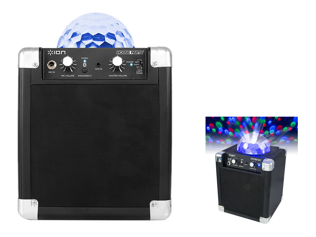 House Party è il modo più semplice per creare un dance party istantaneamente e ovunque. Questo potente e flessibile sistema all-in-one amplifica quasi tutto - iPad, iPhone, iPod, dispositivi Android, microfoni e strumenti. Il sistema di illuminazione integrato con House Party entra automaticamente in azione a tempo con la tua musica mentre cambia colori e pattern. Questi modelli di luce smaglianti e colorati vengono proiettati su soffitti e pareti, dando un'atmosfera immediata di festa, mentre il suo potente altoparlante riempie la stanza di bassi potenti e di energia.