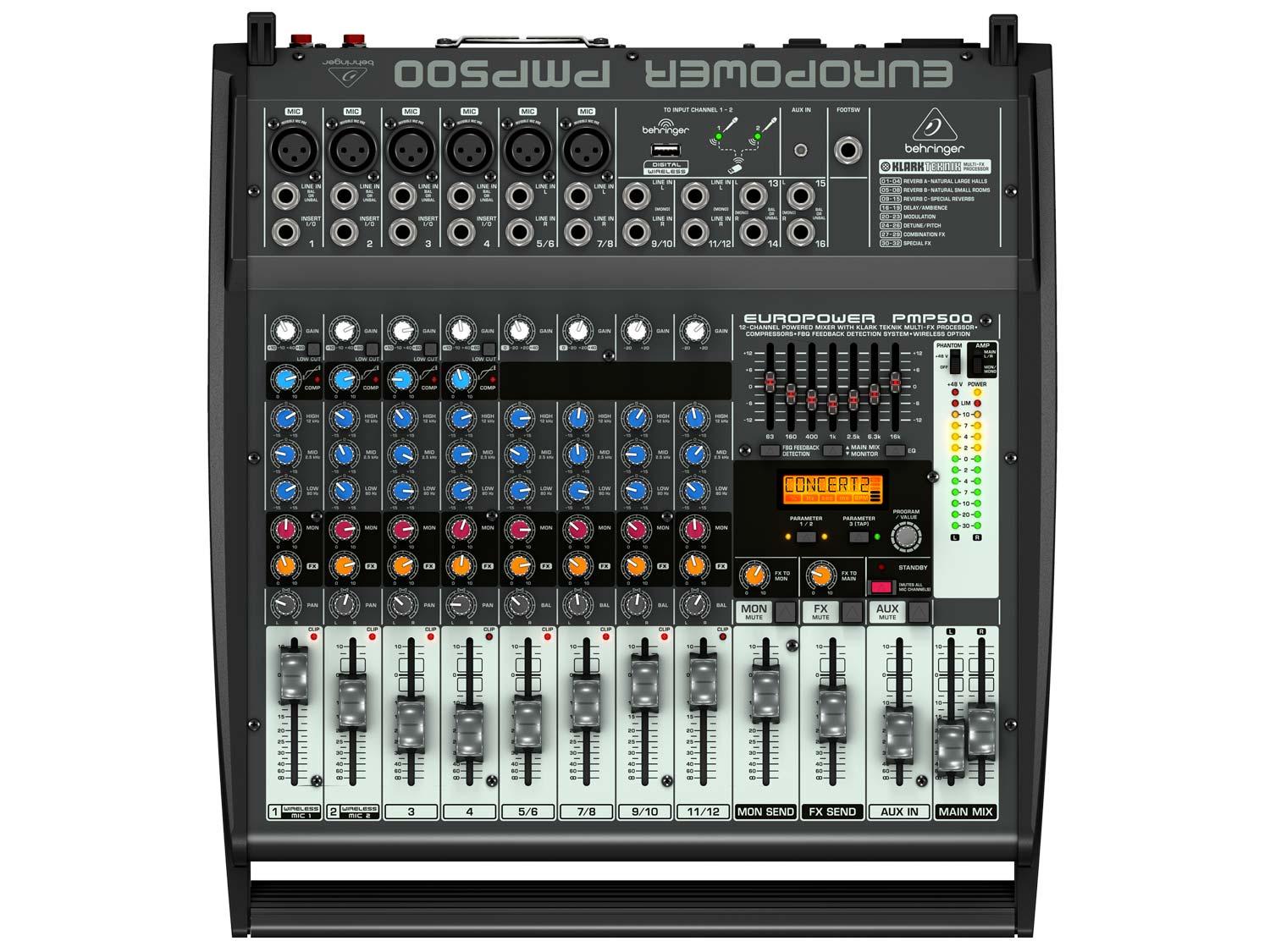 Quando hai bisogno di una qualità audio superiore per concerti in piccoli club ma vuoi mantenere l'attrezzatura al minimo, preparati ad amare il nuovo mixer amplificato Behringer PMP500. Questo mixer da 500 Watt, 12 canali all-in-one combina le caratteristiche dei mixer best-seller di piccolo formato con processori FX appena progettati da KLARK TEKNIK ed un amplificatore con tecnologia in Class-D. Praticamente tutto il necessario per un grande audio in un formato desk-top facile da usare, portatile.