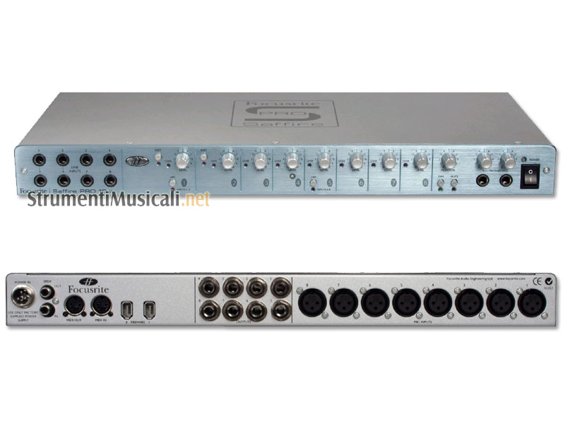 Saffire PRO 10 i/o features the same highly integrated i/o and monitoring control software as 26 i/o, SaffireControl PRO, and can allow for larger recording solutions via the option to aggregate multiple units, all controlled via the same control platform. Housed within a similar stunning 19" rack-mount case with detachable rack ears, Saffire Pro 10i/o combines eight channels of Focusrite pre-amplification with eight balanced line outputs and stereo SPDIF i/o. The pre-amps featured in Saffire PRO 10 i/o are a derivative of the award-winning Green Series. This pre-amp design upholds the same high bandwidth philosophy whilst boasting class-leading specifications. In addition, the converters adhere to performance specifications far beyond other similarly priced interfaces. As with all Saffire solutions, the unit can be either bus-powered or powered via an external PSU. The unit has also been designed to take full advantage of the external PSU and to maximize performance when powered in this way. SaffireControl PRO delivers a control application that avoids any annoying dropdown menus and provides comprehensive custom mix solutions. It also offers quick-select 'tracking' and 'playback' solutions, as well as both the float and shrink/expand facilities found in the original. Saffire Pro 10 i/o also features MIDI I/O alongside a host of additional processing features. Two channels with DI are also provided, eliminating the need for a separate DI box. The front fascia also boasts two independent headphones outputs with volume control, again customizable within SaffireControl PRO. In addition to the control software, Saffire Pro 10i/o comes bundled with the same acclaimed Compression, Reverb, Amp Modeling and EQ VST/AU plug-ins for use in the mix.